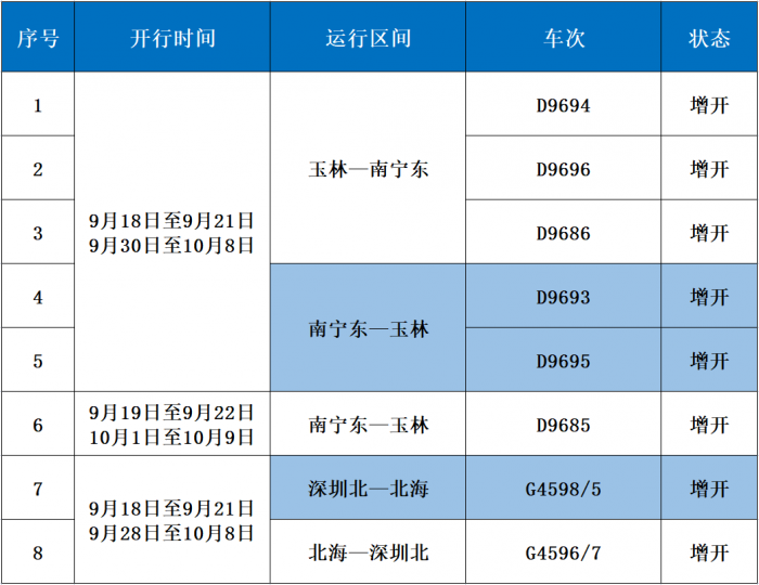中秋国庆假期,玉林增开6趟、重联8趟动车 |