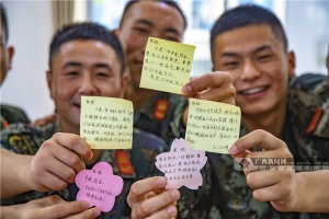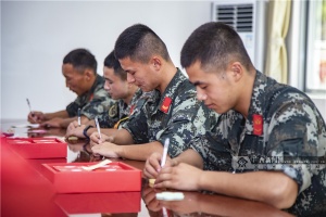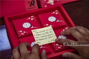 广西新闻网玉林9月16日讯(通讯员 覃红岩 姜军)“爸妈,这是我自己做的月饼,希望你们喜欢。”“爸妈,中秋节快乐,我在部队一切都好,勿念。”中秋节前夕,武警广西总队玉林支队官兵动手制作“军味”月饼,以独特的方式来庆祝中秋佳节,并将装满思念的月饼装入礼盒配上祝福语寄给父母,让远在老家的父母也感受这浓浓的“军营味道”。