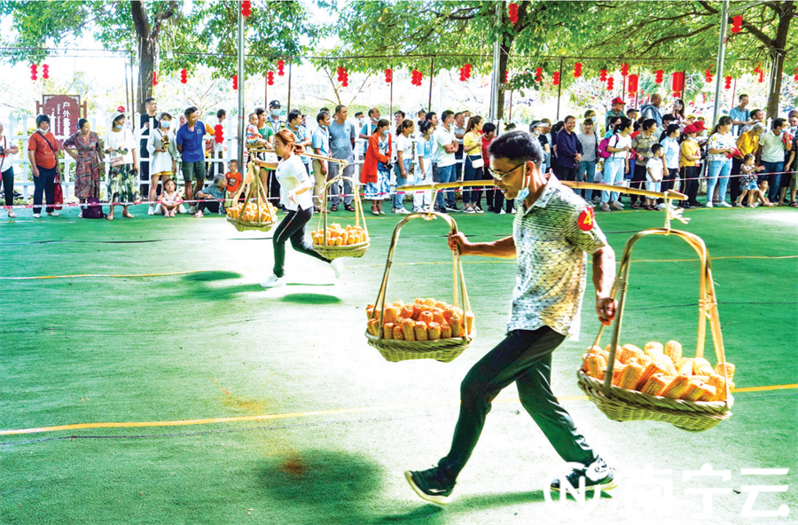 农民趣味运动男女接力挑粮比赛,拼速度比实力,共庆丰收共享喜悦。 展现农民新风貌 西乡塘区举办趣味农运会 吃火龙果比赛、冬瓜接力赛、水果连连看、拔河比赛……昨日的西乡塘区忠良村美丽南方景区,一个个“农”味丰富、趣味十足的竞赛项目,让西乡塘区庆祝2021年中国农民丰收节“趣味农运会”现场变成了欢乐的海洋,笑声、呐喊声汇聚成一曲丰收的赞歌。 在冬瓜接力赛中,村民们抱起大冬瓜接力赛跑,分秒必争,劳动能手摇身一变成为运动健将;在水果连连看比赛现场,参赛选手以两人三足的形式接力,在草帽中寻找两两相同的果蔬,一场集体力、眼力、默契于一体的比拼火热激烈。本次趣味农运会以火龙果、冬瓜、玉米等农产品为道具,参与的村民大显身手,满载而归。 活动现场还设置了“农业科学技术知识科普宣传栏”,对种植业、畜牧业、农机等领域技术知识进行集中宣传。 趣味农运会通过一项项富有乡土气息、贴近农民生产生活的游戏比拼,体现了新时代农民的精神风貌,在营造热烈节日气氛的同时引导广大农民增强健身意识,丰富业余文化生活。 塑造乡村“形实魂” 陆斡镇提升产业品牌影响力 9月23日,庆祝2021年中国农民丰收节暨陆斡镇“感党恩庆丰收促乡村谋振兴”活动举行,农民朋友欢聚陆斡镇忠党村,共庆丰收的喜悦,展望美好的未来。 活动中,村民自发组队参与拔河、“夫妻丰收运稻忙”、“丰收打谷忙”、“夫妻双双运柚忙”、“草地抓鸡”、“浑水摸鱼”等趣味竞技,展示了农民辛勤劳作的场景,展现了当代农村乡村振兴的新气象。现场还举行了“展丰收”“品丰收”等活动,陆斡镇各村屯农民朋友带着自家农产品及小吃,邀请游客品尝,分享丰收的快乐。 近年来,陆斡镇大力推进实施乡村振兴战略,着力在塑造乡村“形实魂”上下功夫,走出了乡村振兴新路子。如今在陆斡镇,“忠党香米”“联合火龙果”“桥东蔬菜”“桥东墨羊”等产业品牌影响力越来越大,武鸣香山源种羊产业示范区和敏山彩虹农乐园功能不断拓展,中国农民丰收节等特色节庆品牌逐渐形成,全镇呈现出农村美、农业强、农民富的美好画卷。 “我们希望通过这个活动,让全社会都能感受到丰收的喜悦和快乐,传承和弘扬中华农耕文明和优秀传统文化。”武鸣区陆斡镇镇长陈春宇表示,未来,陆斡镇广大农民将积极创造美好生活、建设美好家园,为乡村振兴贡献自己的力量。 |