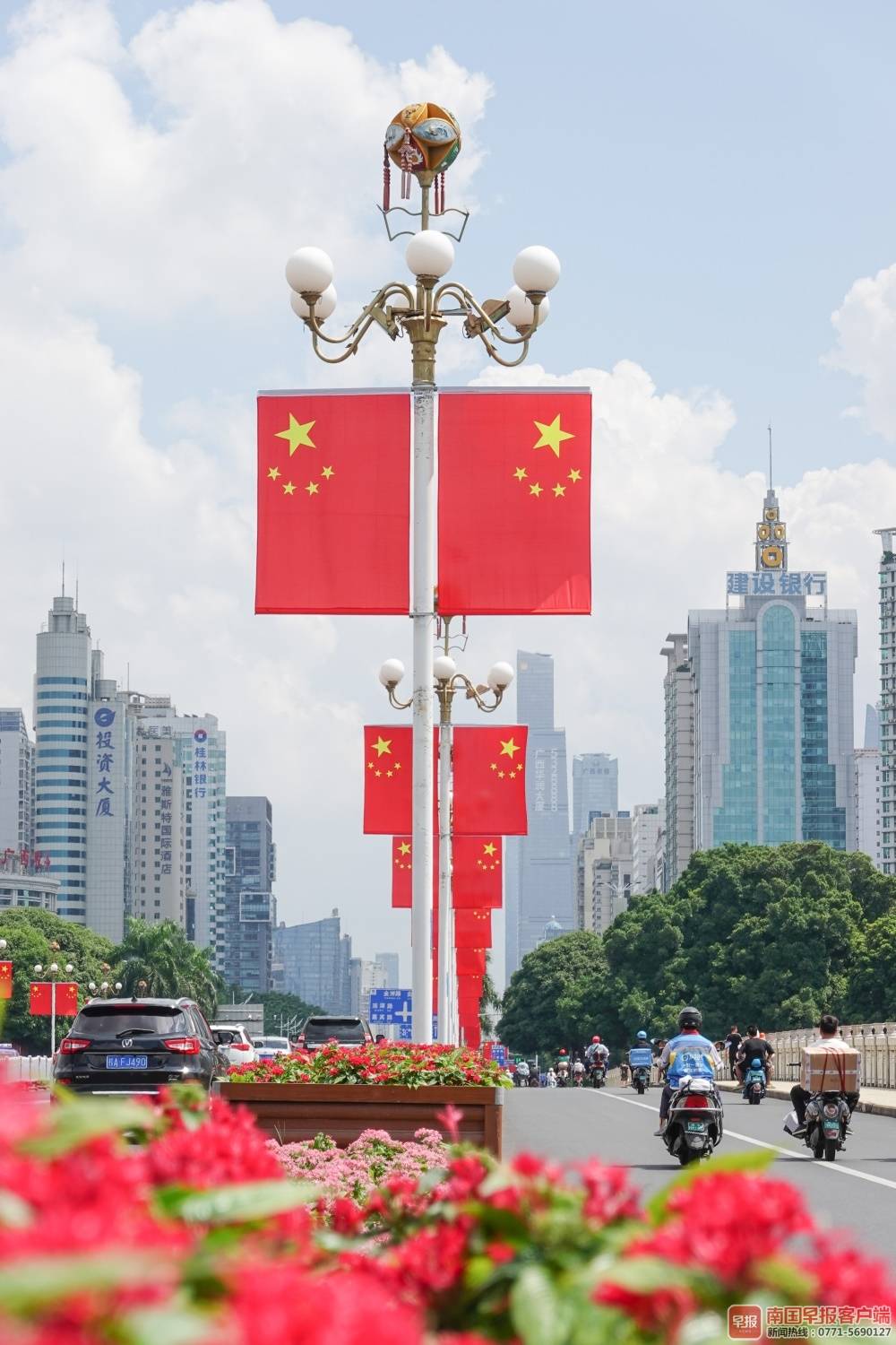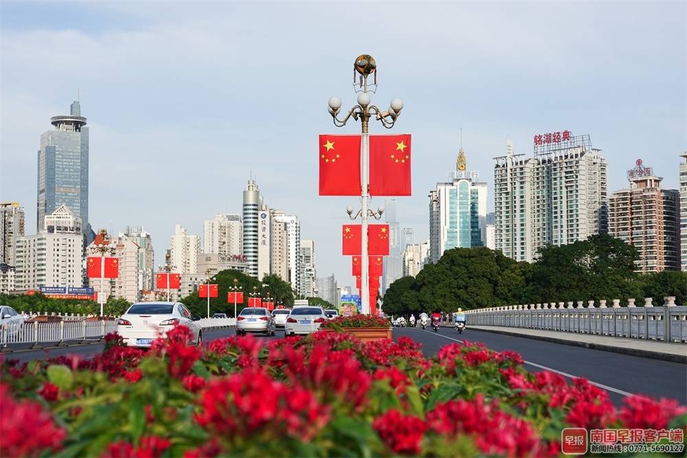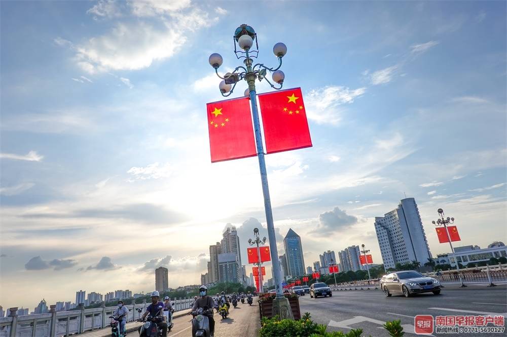 ▲南湖桥上国旗飘扬。