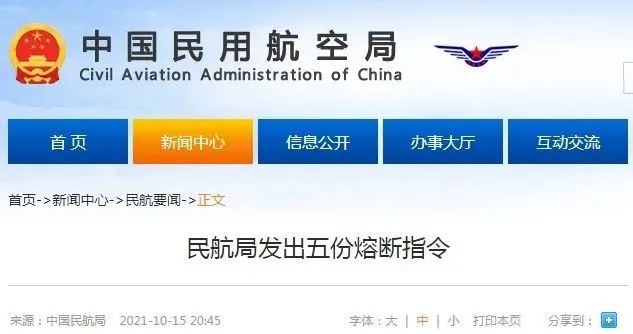 民航局发出5份熔断指令 10月15日 民航局发出熔断指令 5家中外航空公司 检出30例阳性 这些航班全部暂停