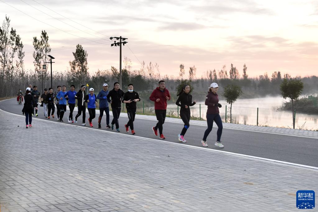 10月23日,市民在泊头市大运河堤顶路上跑步健身。 近年来,河北省泊头市围绕“大运河文化保护重要承载地”目标定位,在保留原有植被,恢复大运河自然生态的基础上,重点建设了大运河堤顶路、贡梨公园、临河栈道、山楂树广场等景观,为广大市民创造了优美舒适的休闲空间。 新华社记者 骆学峰 摄