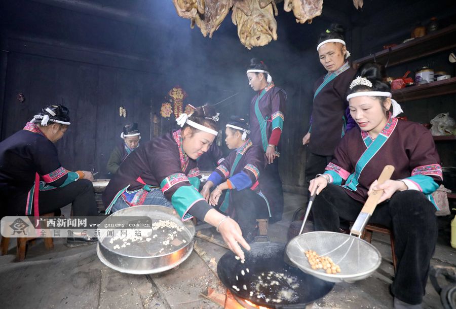 1月19日,在三江侗族自治县良口乡良帽村,村民们在炸油果。广西新闻网通讯员 龚普康 梁秀明供图