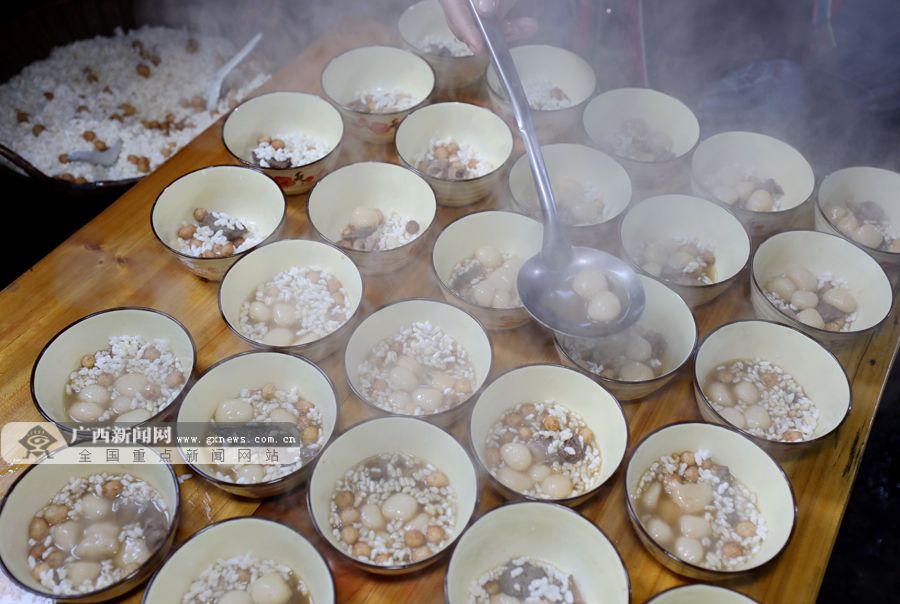 侗乡群众一日三餐离不开打油茶,在春节前炸油果、打油茶是当地的一种传统习俗。油果是侗族打油茶的主要佐料之一,用优质糯米舂粉、和面、切丁,并用野生山茶油炸制而成。