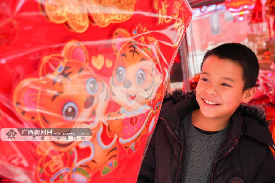 广西新闻网全州1月21日讯(通讯员 唐广东)春节临近,1月21日,桂林市全州县群众在年货市场纷纷购买红灯笼、中国结和春联等新年饰品,到处是红红火火的喜庆景象。