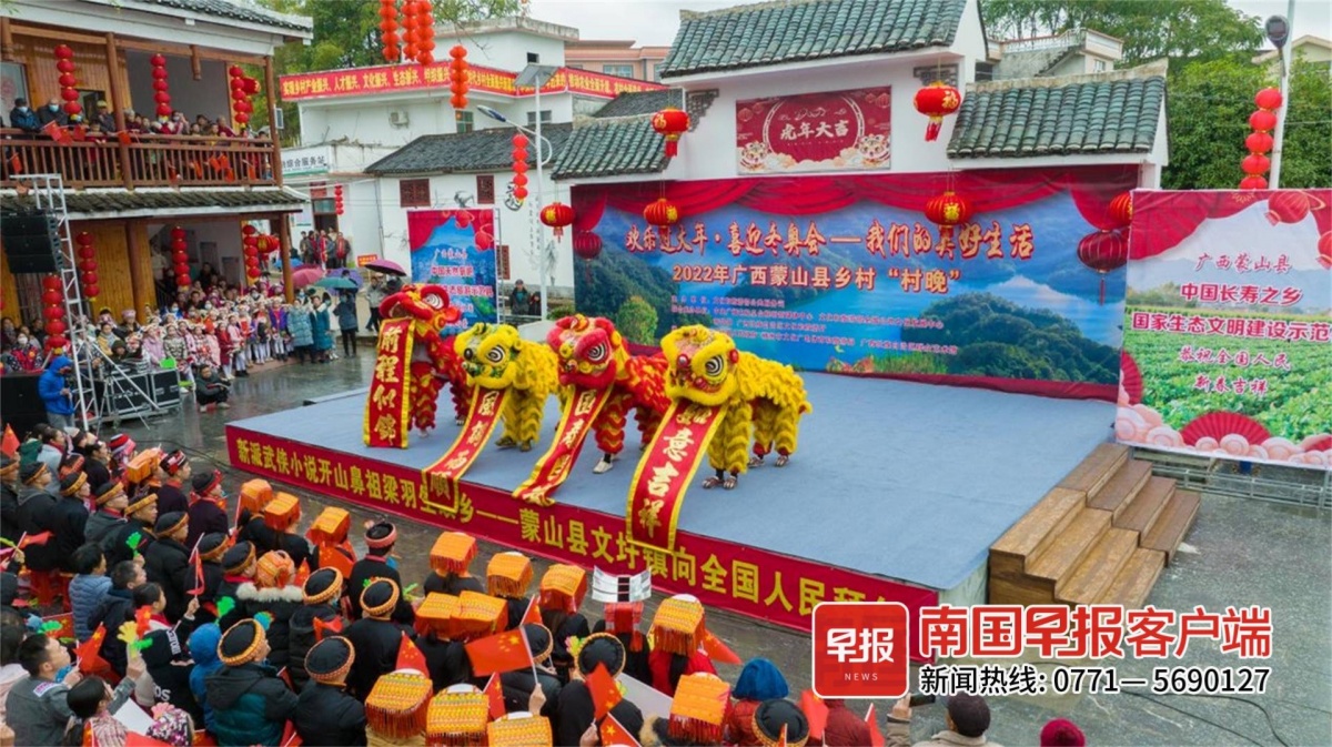 1月26日,由文旅部和中央电视台等单位联合主办的2022年全国“村晚”示范展示活动于线上开展。活动以“欢乐过大年·喜迎冬奥会——我们的美好生活”为主题,全国共有80个地区作为示范展示点。 记者了解到,广西有3台“村晚”入选此次展示,分别为在柳州市柳城县太平镇龙兴村古么屯、梧州市蒙山县文圩镇大明村、岑溪市糯垌镇绿云村开展的三场专场演出。极具广西传统文化魅力的山歌、彩调、牛娘戏、粤曲等,向全国观众充分展示了广西新农村、新气象、新面貌,彰显生机勃勃的广西群众文化新活力。 柳州市柳城县太平镇龙兴村古么屯专场演出中,壮歌《载歌载舞庆丰年》、彩调《四门摘花》、歌舞《风吹蔗林》等特色节目贴近生活,深受当地观众欢迎。 ▲柳州市柳城县太平镇龙兴村古么屯专场彩调剧。广西群众艺术馆供图 梧州市蒙山县文圩镇大明村“村晚”则为观众带来了狮舞《雄狮献瑞》、蒙山山歌《颂党山歌汇成河》、武侠小剧《陈府招亲》等演出,体现了乡村传统与现代融合、传承与创新并举的文艺发展。 ▲蒙山县文圩镇大明村“村晚”狮舞表演《雄狮献瑞》。广西群众艺术馆供图