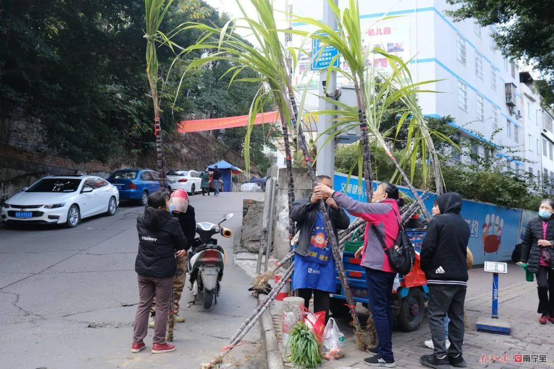 每年春节,市民曾女士都会买一对“有头有尾”的黑皮甘蔗摆放在大门外。昨日,趁着阳光,她赶紧到小区附近的农贸市场买了一对甘蔗回来。她笑道,这也是老南宁过年习俗之一。 除了“三件头”,老南宁还会买带叶带根的胡萝卜、甘蔗、芹菜、蒜苗、生菜和葱。红色的胡萝卜寓意红红火火,甘蔗寓意生活节节高、有头有尾,生菜寓意生机勃勃,芹菜、蒜、葱则希望家里的小孩勤快、聪明、能算。 年味,就是南宁人准备过年忙碌的身影;年味,就是南宁人采购年货时开心的笑容;年味,还是南宁街头的喧闹和繁荣,以及大街小巷飘扬的中国红……