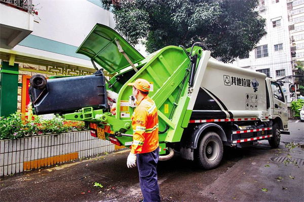 环卫其他垃圾收运车辆对居民小区内分好类的生活垃圾进行收运。
