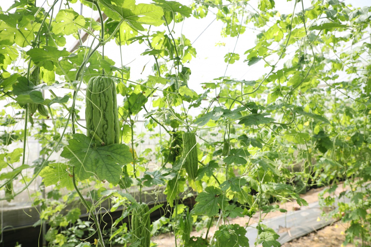 五塘苦瓜基地年种植面积在2万亩以上,总产量8万吨左右。苦瓜一般在春季种植,而五塘苦瓜不仅有春季苦瓜,还有耐高温的夏季苦瓜。“春、夏、秋这三个季节的品种我们都放在棚里做示范。夏天我们主要是培育苦瓜的抗热性,拿抗热的品种互相做杂交,培育出来的夏季苦瓜在棚里面温度达到50度的情况下,它还能正常生长。”南宁市国翠农业专业合作社总经理陆坚邦说,“农户也不用天天担心夏天种的苦瓜不耐热、容易死、产量少,夏季苦瓜从夏天到秋天都能种,这样就把我们农户种植的产量提高了。”