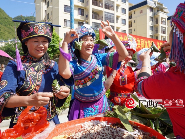 9月6日,在罗城仫佬家园社区秀美家园院里,移民搬迁群众在开心的包粽子。 活动当天,通过开展民间传统的包粽子、抢粽子、印记12个世居民族小月饼等活动,营造了浓浓的节日氛围,现场气氛活跃,热闹不凡。印记有广西12个世居民族的小月饼环绕一个大月饼,寓意各族群众紧紧团结在党中央周围,像石榴子一样紧紧拥抱在一起。其间,身着节日盛装的各民族群众代表伴着欢快的音乐,载歌载舞、欢聚一堂。整场活动始终洋溢着欢乐、祥和的气氛,促进了各民族交往交流交融。