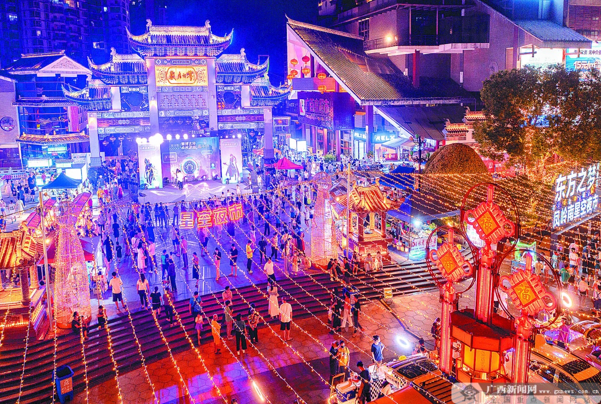 9月10日中秋之夜,南宁市民纷纷出门赏月,乐享阖家团圆。在青秀区凤岭南片区的星空夜市,市民在璀璨的灯光下品美食、赏夜景。广西新闻网-广西日报记者 周军 摄