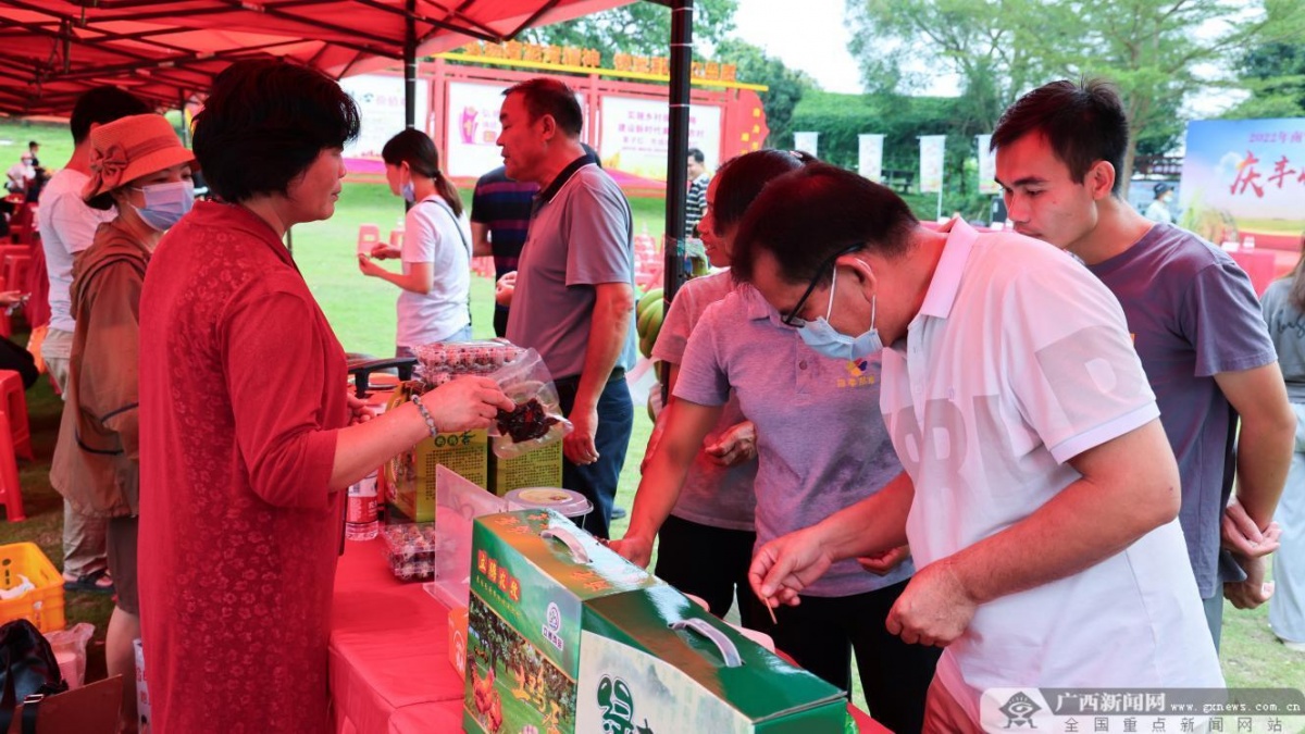 广西新闻网南宁9月21日讯(通讯员 戴安妮 杨敏卓)金秋送爽,硕果迎宾。9月20日,以“庆丰收、迎盛会”为主题的南宁市江南区2022年农民丰收节活动在四季那廊生态园成功举办。本次活动现场通过农特产品展销、农产品采摘、直播带货、歌舞表演等形式,重点展示江南区近年来大力发展壮大镇域经济,在推广创新生产模式、引进农业技术人才、推动文旅融合发展、打造特色文化品牌等方面取得的突出成果。