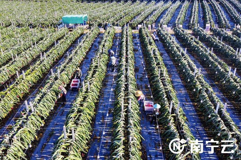 火龙果产业建成高标准产业。近年来,南宁市火龙果产业持续快速发展,由零星、小面积种植发展至现在的规模化、产业化、标准化种植,各项配套服务逐步建立,产品逐步丰富,产业链条逐步完善。2021年,南宁火龙果种植面积18.8万亩、产量39.8万吨,一产产值32亿元,是广西乃至全国的第一大火龙果产区,产量占全国五分之一,有“中国火龙果看南宁”的美誉。“南宁火龙果”获国家地理标志农产品登记、通过“地标产品+绿色食品”双重认定,还获农业农村部指定为地理标志保护工程、农产品“三品一标”典型案例,是广西唯一获得这两项荣誉的农产品。