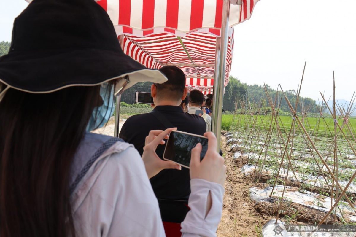 游客体验稻田小火车。 广西新闻网实习生 林媛媛 摄