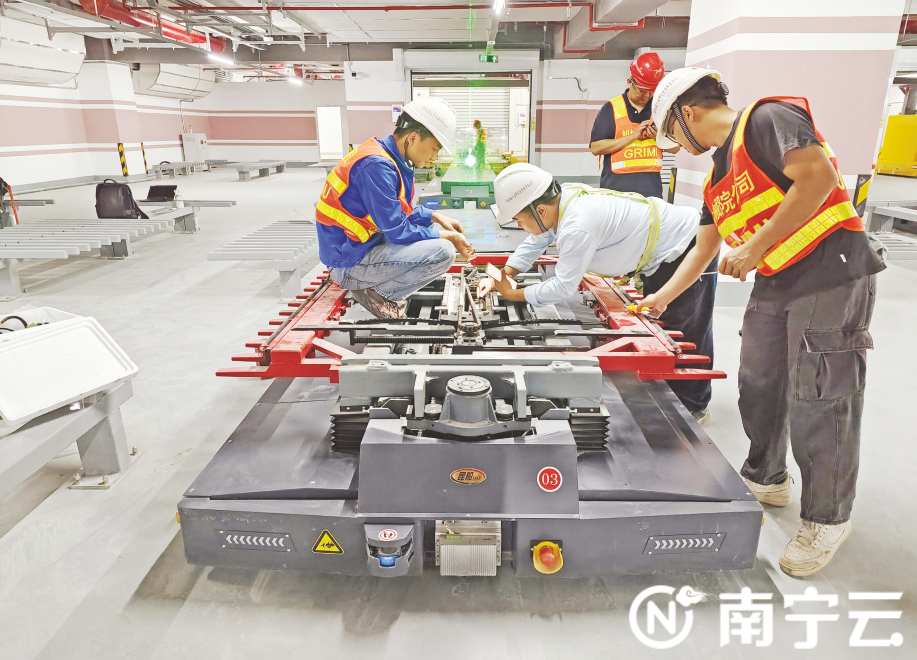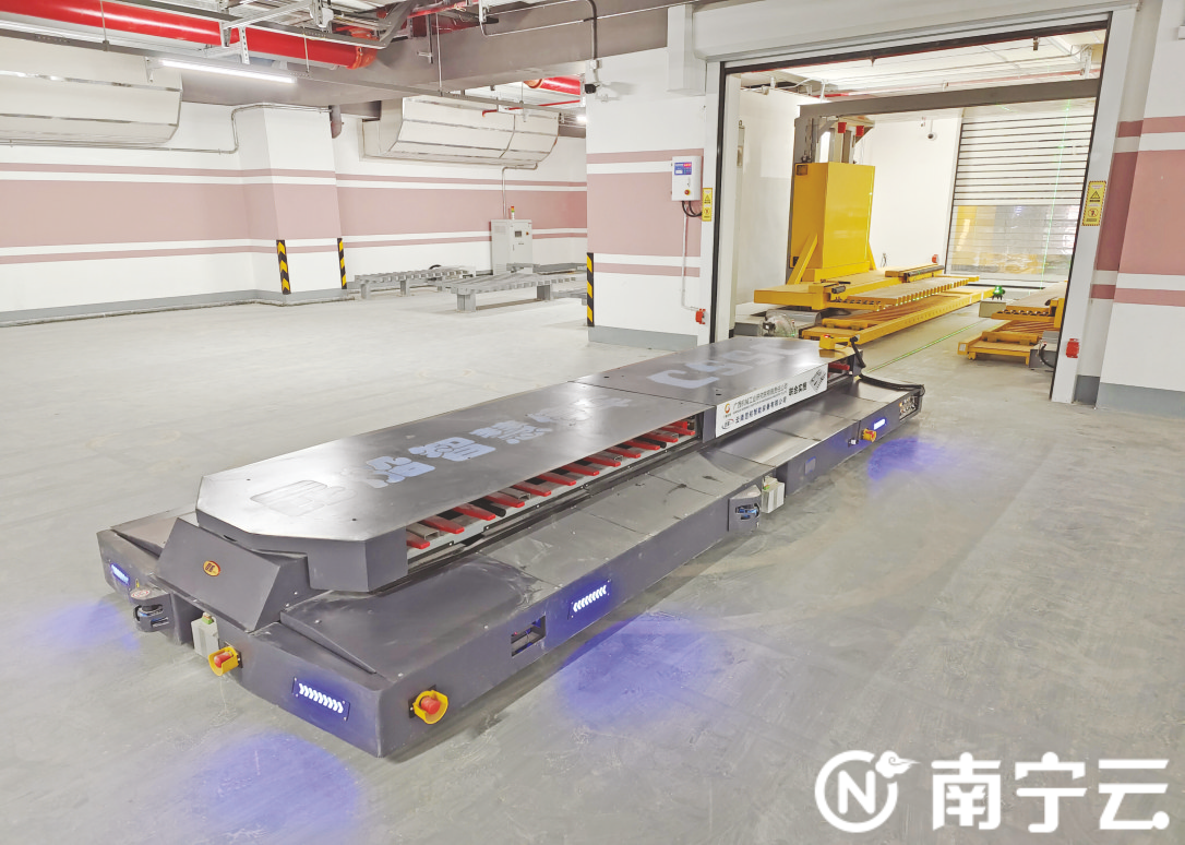 该项目停车库内设置了近3000个停车位。除了常见的停车位,还规划了自动泊车区,引入智慧车库AGV机器人自动泊车系统。记者在自动泊车区域看到,现场有3个房间模样的自动泊车出入口,市民赶飞机时把车停放在交接站,将有智能机器人“代劳”,把车辆从停车平台搬运到停车位,即可免去找停车位的麻烦。据悉,GTC项目停车库预计月底投入使用。