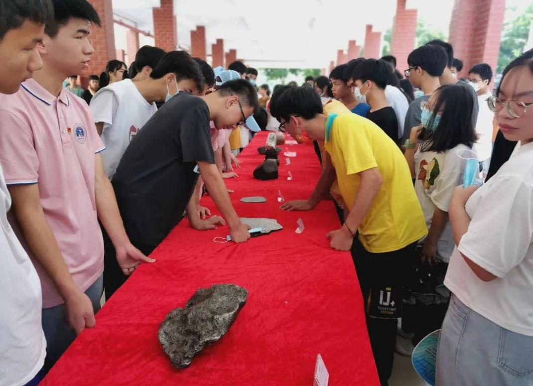 在领导老师的带领下,大家有序参观桂林理工大学博物馆带来的具有代表性的矿物晶体、广西常见的古生物化石、稀有的陨石和宝玉石标本等。一个个展品让同学们目不暇接,让同学们近距离感受地学的魅力,丰富了同学们的地学知识,激发了他们探索欲望和热情。