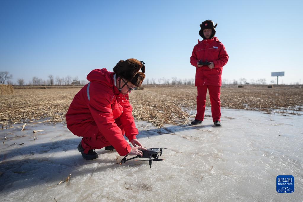 2月6日,中国石油辽河油田兴隆台输气分公司巡线工人准备使用无人机进行巡线工作。 在中国石油辽河油田油气集输公司兴隆台输气分公司,巡线工人要每天步行巡查辖区内的管线,巡查范围包括1634个管道桩、1064个警示牌、602个检测桩以及途经126个村屯的14条管线。 元宵节刚过,工人迎寒风、走冰面,在户外对管线进行巡查,保障供气安全。 新华社记者 潘昱龙 摄