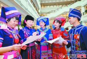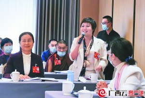3月5日上午,广西代表在一起热议政府工作报告。记者 黄克 摄