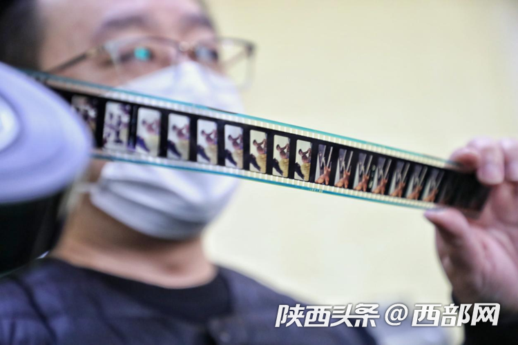 西影传媒影像修复中心主任雷刚展示电影胶片。