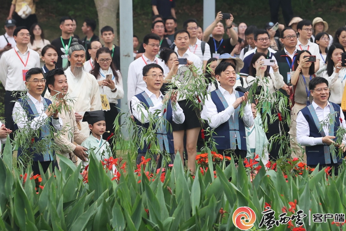 4月21日上午,以“潮起三月三 奋进新时代”为主题的2023年“壮族三月三·八桂嘉年华”在南宁市青秀山欢乐启幕。自治区党委书记、自治区人大常委会主任刘宁,自治区政协主席孙大伟等来到活动现场,与各族群众共庆佳节。 节日的青秀山,花团锦簇、歌舞萦绕、美食飘香,俨然一片欢乐的海洋。上午9时,刘宁、孙大伟等自治区领导身着民族服装步入活动现场,与壮族优秀群众代表,党的二十大代表、广西交通投资集团南宁高速公路运营有限公司南宁东收费站党支部书记、副站长农凤娟和南宁市第七次民族团结进步模范个人、南宁市西乡塘区坛洛镇党委统战委员、副镇长林兴,一道为2023年“壮族三月三·八桂嘉年华”和中央广播电视总台“在中国大地上边走边跳”节目揭幕。 刘宁、孙大伟与壮族优秀群众代表农凤娟,南宁市第七次民族团结进步模范个人林兴一道为2023年“壮族三月三·八桂嘉年华”和中央广播电视总台“在中国大地上边走边跳”节目揭幕。 “三月三”是中华民族共同的文化记忆。上古时期就有踏春祈福的习俗,汉代称为“上巳节”,是盛大的全国性节日,魏晋时期逐渐固定在农历三月初三,隋唐时期“三月三”节日更加盛大,形式更加丰富。广西各民族群众传承弘扬中华优秀传统文化,像石榴籽一样紧紧抱在一起,将“三月三”办成民族团结一家亲、同心共筑中国梦的特色节日。今年的“壮族三月三·八桂嘉年华”开幕演出分为“古风雅集”“时尚潮玩”“民族团结”三大版块。“古风雅集”通过画舫游船、水上歌舞、丽人游春、孩童蹴鞠、吟诗作画等呈现古代市井百态的中华传统民俗活动,生动展现了中国汉代“三月三”上巳节的场景,带领观众回溯“三月三”的历史传承。从“古风雅集”穿过一道花墙,中国和东盟各国小朋友带领宾客进入“时尚潮玩”版块,活力四射的街舞、炫酷的“壮族机甲”、令人热血沸腾的DJ等时尚表演,把活动现场变成一场大联欢。“民族团结”版块则是从一场壮族传统婚礼开始,身着盛装的老人用壮语为新人送上祝福,随着新人完成庄重的“碰蛋”仪式,一场民族风情浓郁的盛宴拉开帷幕。 刘宁、孙大伟等边走边看边听介绍,不时驻足观看展示展演,走到湖边堤岸边插上柳枝,寓意插柳迎春、生机盎然,并在大草坪入口处为醒狮点睛。偌大的草坪上,全区各族群众代表和台湾同胞代表正聚在一起欢歌热舞,非常热闹。刘宁、孙大伟等走到各族群众代表中间,与大家手拉手跳起了欢乐的连心舞,生动展现了中华民族大团结、民族团结一家亲的深厚情谊。
