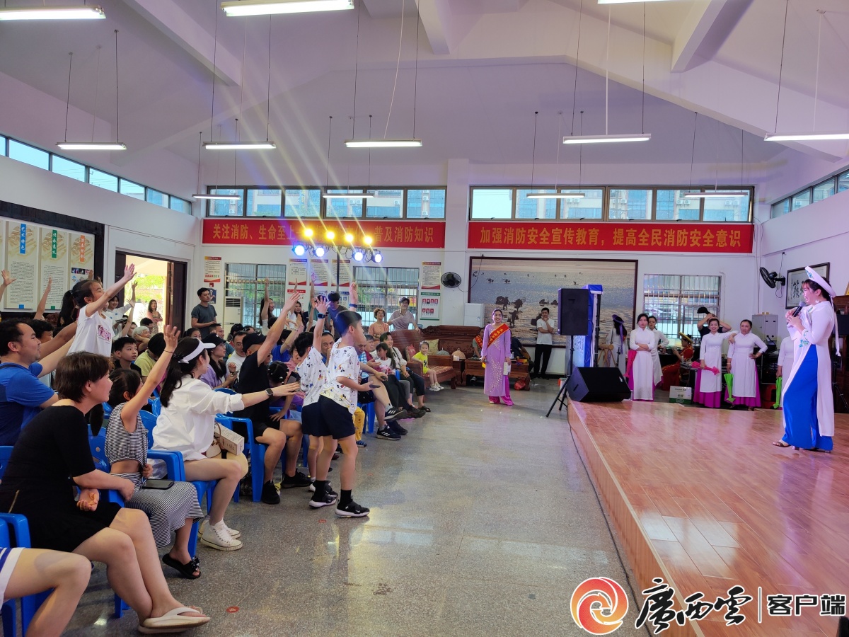 民族风情文艺展演尽显京族文化魅力。 袅袅琴音翩翩入耳,展演现场游客满座。开场的独弦琴合奏《你起插来我扯帆》以灵动旋律勾勒起京族人民的幸福生活图景。在欢乐气氛带动下,歌唱、舞蹈等节目依次精彩亮相,《我爱金滩我爱京岛》《植树歌》《山歌牵出月亮来》等歌曲婉转清亮,徐徐唱响爱乡爱家之心,细细传递民俗情感。《天灯舞》《遇上意中人》等舞蹈生动演绎着少数民族质朴的生活场景,尽情展现特色文化魅力。压台的合唱《欢迎客到我家来》进一步抒发了各族人民心手相牵、共话情谊的热忱期盼。沉浸于非遗文化盛宴,游客掌声迭起,纷纷拍照留念和参与有奖竞答,在互动交流中深入了解“三月三”民俗文化和消防安全知识。通过共庆传统佳节,各族群众不断加深着友好往来,在传承中增进民俗文化认同感和亲近感。