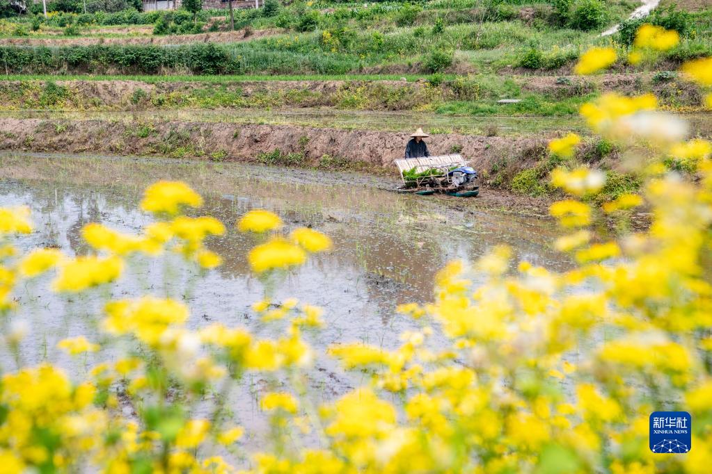 5月4日,在重庆市合川区大石街道龙骨村,农民操作农机插秧。 目前,地处重庆西北部、被誉为“巴渝粮仓”的重庆市合川区粮食耕种进入冲刺阶段。稻农们忙碌在田间,通过直播、机插秧、人工移栽等方式,抢抓农时,播种插秧。 “巴渝粮仓”合川区,粮食总产量连续多年位居重庆市首位。 新华社记者 唐奕 摄