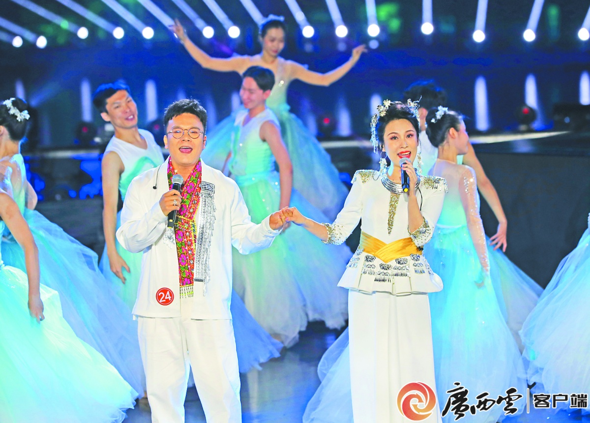 “看到流水,就能看到爱情的模样……”十强选手银悦西和袁泉在总决赛中带来一曲原创水族情歌《希普都爱》。获全国“仫佬族之花”称号的银悦西,曾代表仫佬族参加北京奥运会开闭幕式演出,袁泉是广西乐坛的资深唱将,民通跨界的青年歌手,两人珠联璧合的演绎,唱出了山水之间的浓情蜜意。