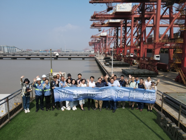 “潮起最美海岸线”全国沿海省份融媒体新闻行动走进宁波舟山港北仑港区。