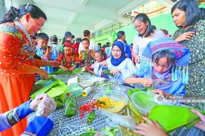 6月16日,南宁市民主路小学举行“浓情端午 ‘粽’享交流”2023年中国—东盟人文交流活动,邀请20名来自马来西亚、越南、缅甸、印度尼西亚等国家的广西民族大学留学生走进校园,与师生一起包粽子、画团扇、编彩绳、剪纸,感受中国传统佳节端午节的独特魅力,增进各国文化交流。记者 何学俏 摄(广西新闻网-广西日报)
