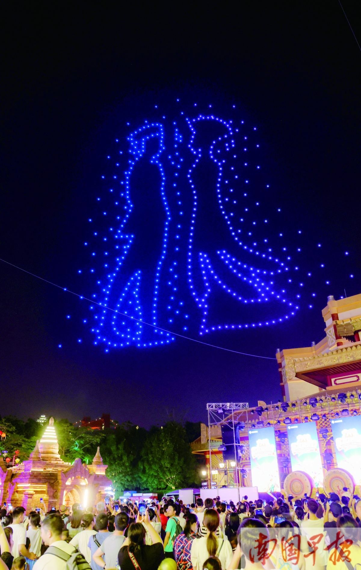 南宁一景点,数百架无人机组成出“刘三姐”和“阿牛哥”形象。记者 何定坚 摄