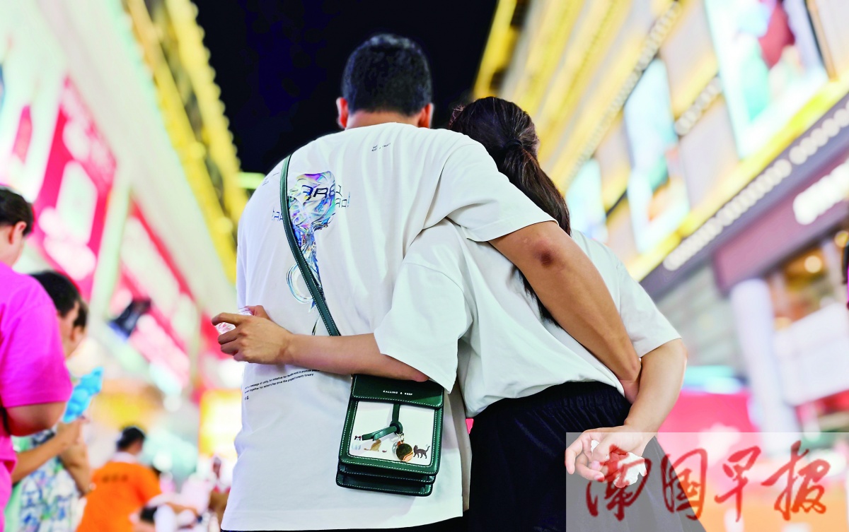 南宁街头,一对情侣相拥而行。记者 何定坚 摄