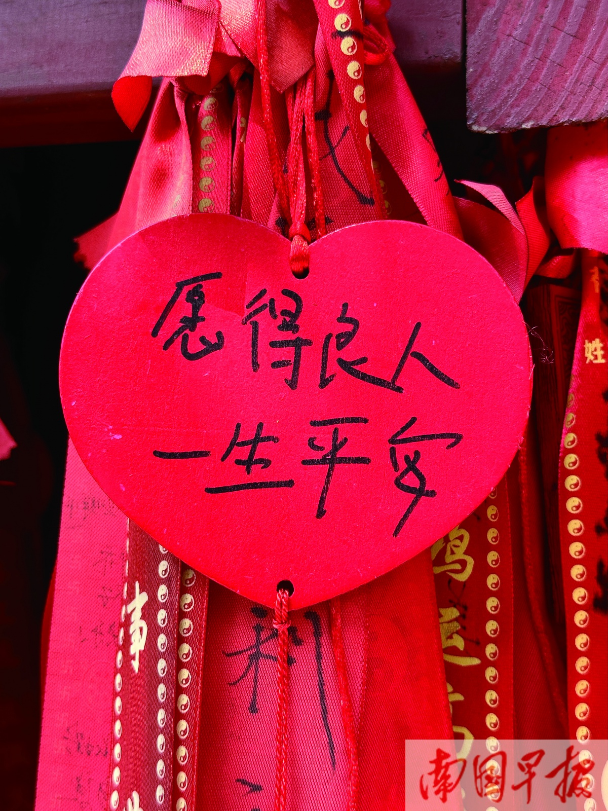 “愿此情,亦如七夕,亦是朝夕”“执子之手,与子偕老”……8月22日一早,南宁市“三街两巷”历史文化街区的城隍庙里,就迎来了前来祈求爱情的年轻人。“愿得良人,一生平安。”在南宁上大学的小周一边在祈福带上写下心愿,一边说“希望今晚可以表白成功!”