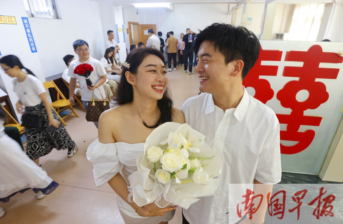 8月22日是中国传统节日——七夕节,不少情侣会选择这个富有浪漫色彩的日子与另一半定下终身大事。当天,南国早报记者在南宁市部分城区民政局婚姻登记处看到,在这个大型的“撒糖”现场,准备领取结婚证的新人们排起长队,连空气中都洋溢着甜蜜的味道。
