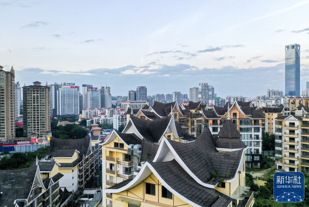 这是9月7日在广西南宁拍摄的东盟商务区里的建筑(无人机照片)。新华社记者 曹祎铭 摄
