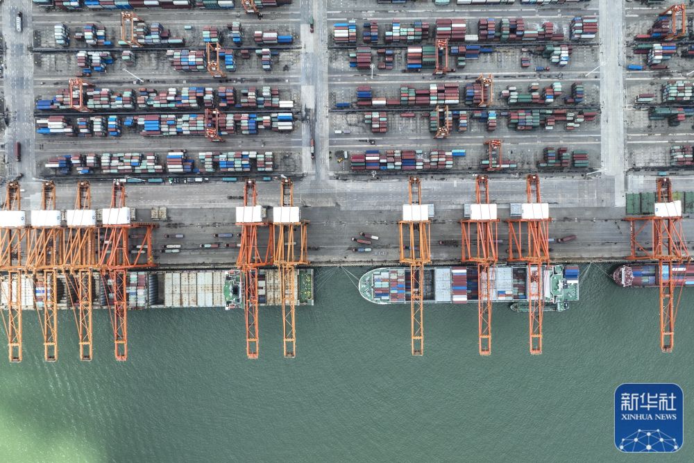 这是2023年7月22日拍摄的北部湾港钦州自动化集装箱码头(无人机照片)。新华社记者 曹祎铭 摄