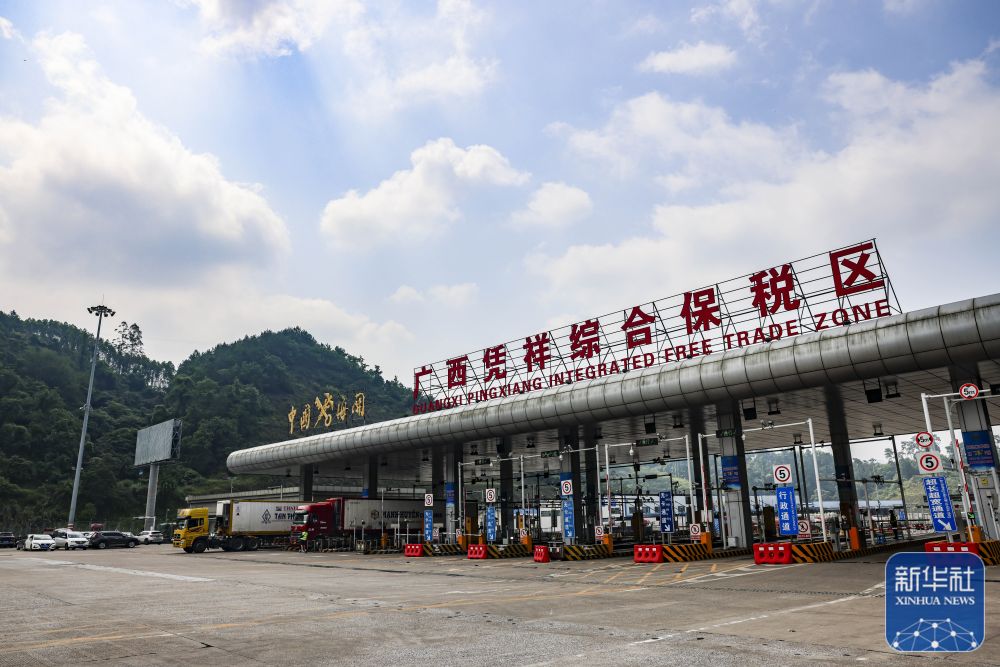 5月19日,载有东盟国家商品的卡车驶入广西凭祥综合保税区。新华社记者 胡星宇 摄