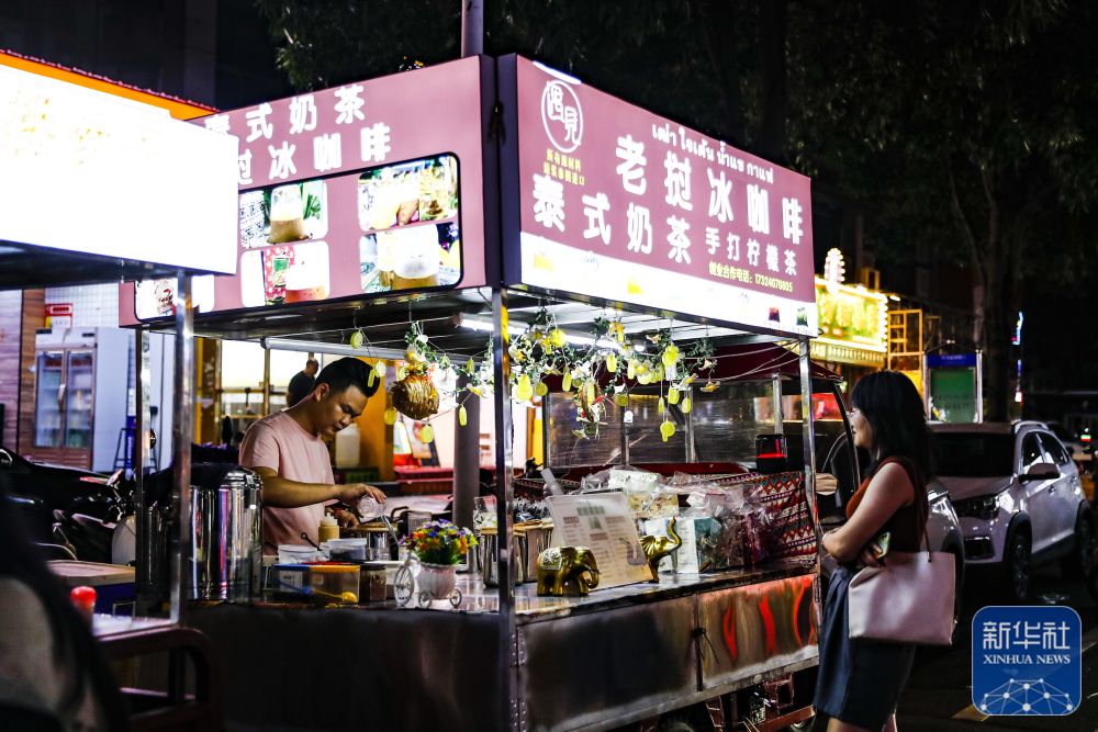 9月8日,市民在广西南宁的夜市上购买东南亚特色饮品。新华社记者 胡星宇 摄
