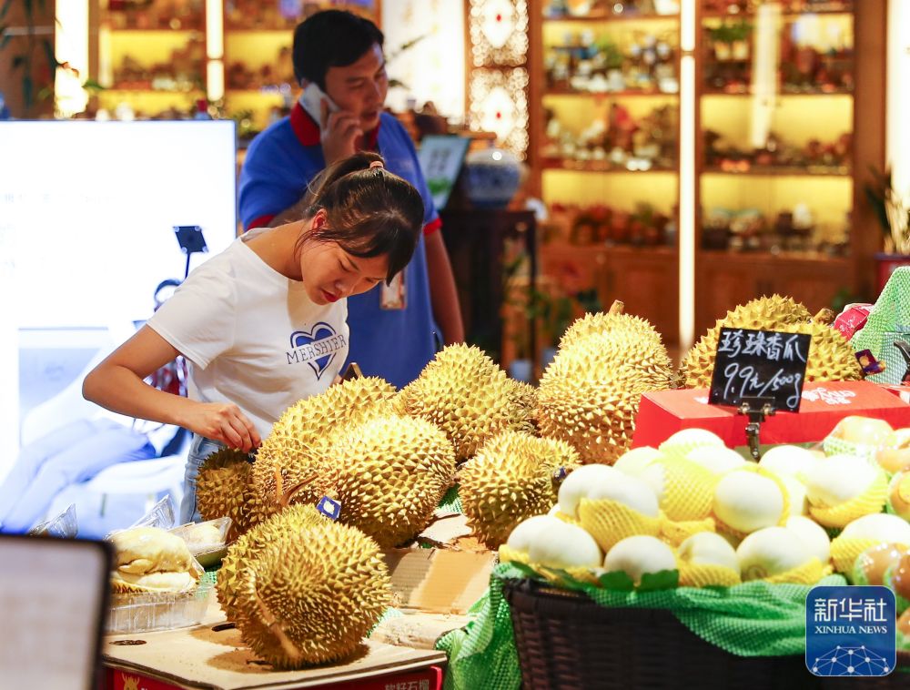 9月7日,市民在广西南宁一家超市选购泰国榴莲。新华社记者 胡星宇 摄