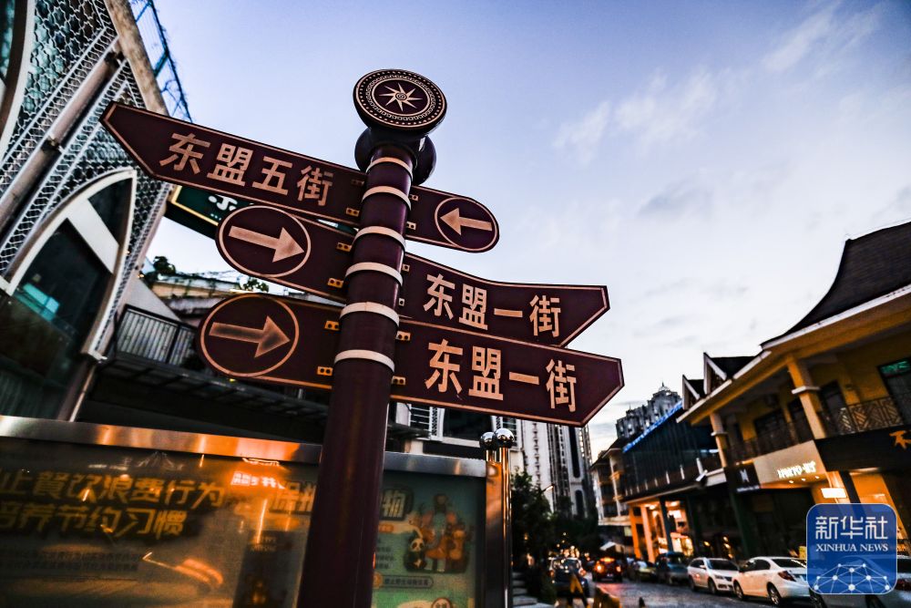 这是9月7日在广西南宁拍摄的东盟商务区里的路标。新华社记者 胡星宇 摄