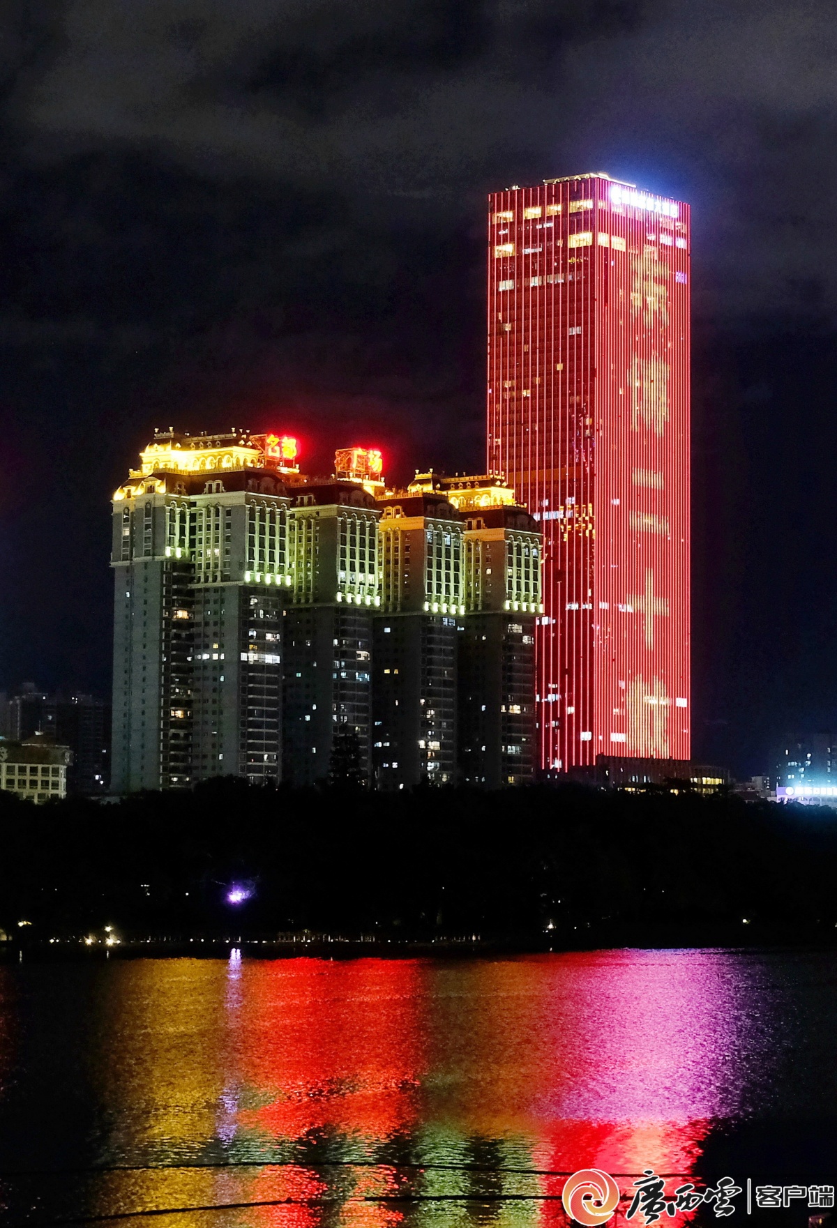 邕江一桥南南宁剧场迎接盛会楼宇灯光秀。记者 周军 摄