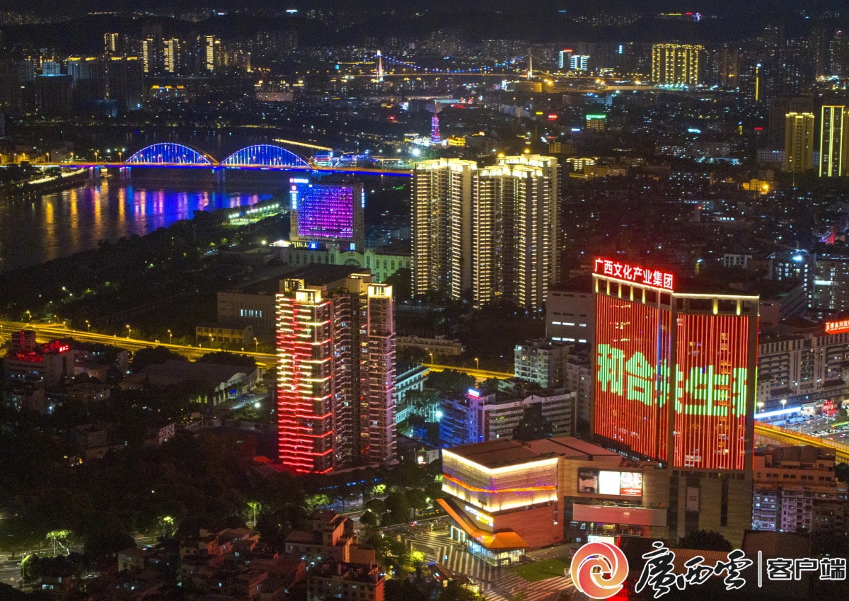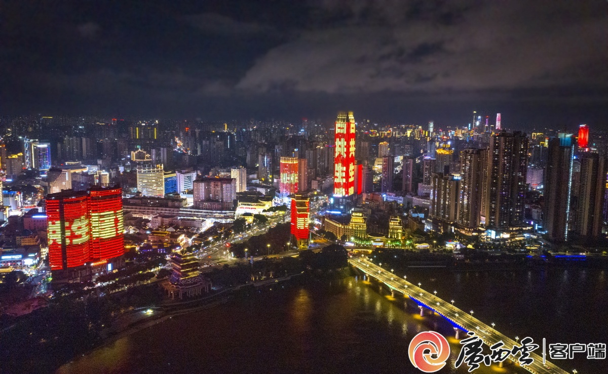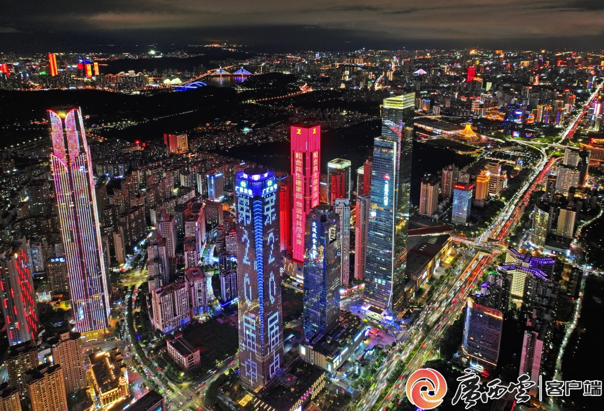 邕江河畔璀璨灯光迎盛会。记者 周军 摄