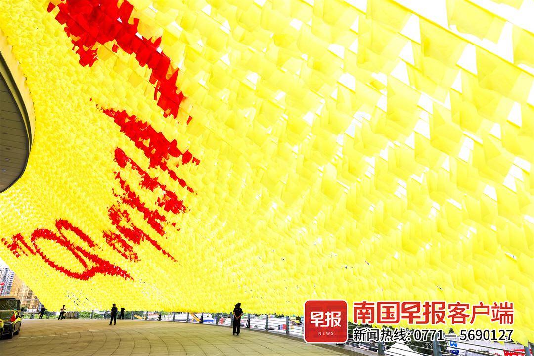 ▲朱槿花厅的外面,彩旗飘飘。记者 游拥军 摄