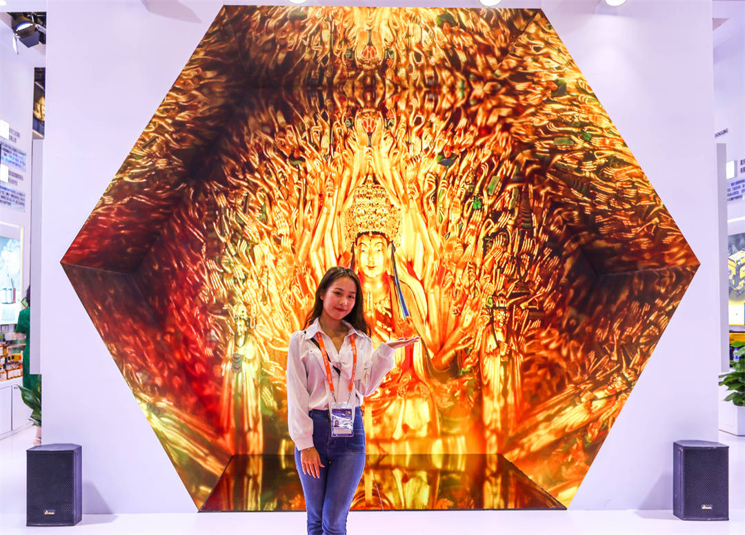 ▲中国交建展位,顶上的LED灯群很有冲击力。记者 游拥军 摄 重庆展位的多屏展示,颇为惊艳。记者 游拥军 摄