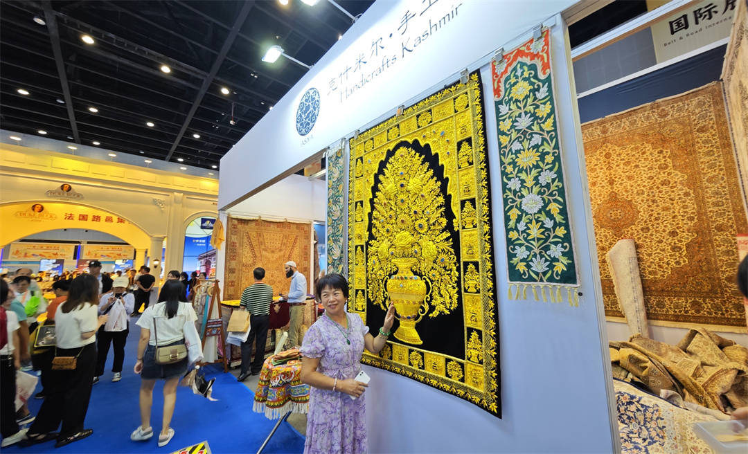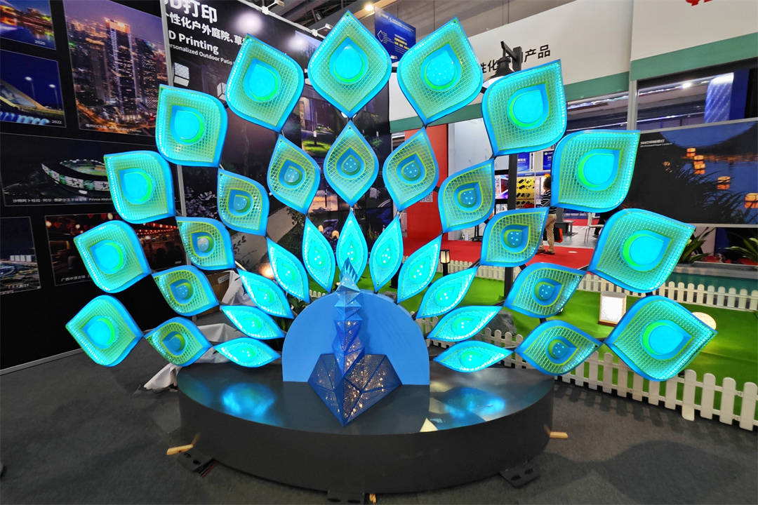 ▲“一带一路”国际展厅,漂亮的手工布品展点。 记者 何定坚 摄 ▲数字技术展区,美轮美奂的灯饰。记者 何定坚 摄