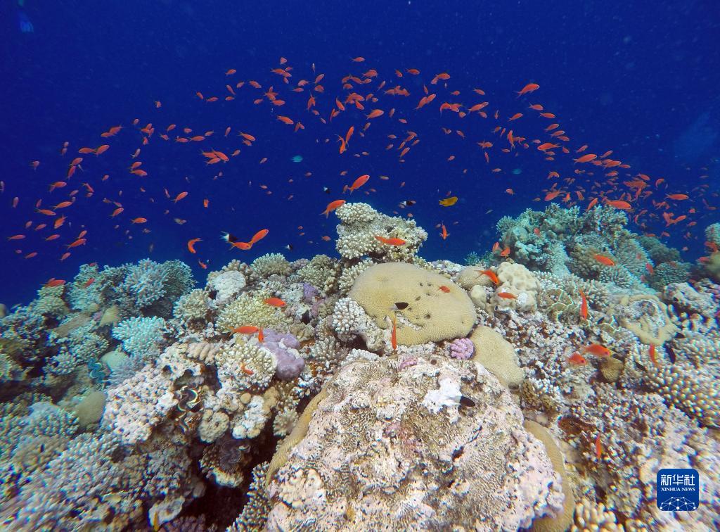 这是10月2日在埃及西奈半岛达哈布蓝洞内拍摄的珊瑚和鱼类。