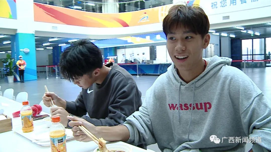 第一届全国学生(青年)运动会运动员村工作人员 侯晨宏:他们比较(爱)吃肉,喜欢吃肉,牛肉什么的,桂林米粉,像这种虾什么的,他们比较喜欢,来一碟,再来一碟。