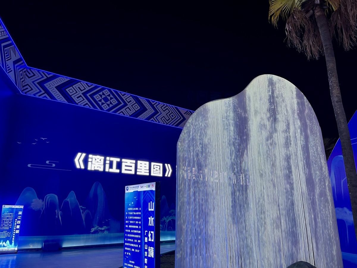 《元境空间》布展面积超过800平方米,分为四大体验区:以漓江画派领军人物黄格胜老师的《漓江百里图》活化为主题的全沉浸式数字艺术体验馆、以广西文旅地标和非遗文化代表为展示主题的巨型裸眼3D艺术视觉展区、依托增强现实技术重现千年花山文化的AR体验馆、以及水光交融的数字瀑布虚实融合体验区。此外,“广西文化旅游数字推广大使”——刘三姐数字人也将作为游客探索《元境空间》的智能虚拟导游,游客不但可以跟她实时交流,还能合影留念。