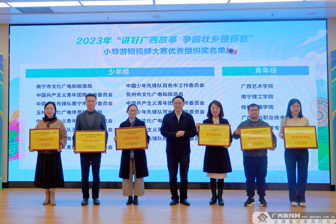 广西新闻网南宁12月17日讯(记者 杨思悦 甘艳霞 李彬华 实习生 杨玉梅)青少年是创新的生力军,是激发文旅高质量发展新动能的重要力量。12月17日,2023年“讲好广西故事 争做壮乡推荐官”小导游短视频大赛颁奖仪式在南宁举行。大赛由自治区文化和旅游厅、共青团广西区委、广西少工委联合主办,广西云数字媒体集团承办,旨在充分发挥青少年的力量宣传广西文旅资源,讲好广西故事,促进文化和旅游深度融合发展,进一步提升“秀甲天下 壮美广西”文化旅游品牌形象的知名度和美誉度。