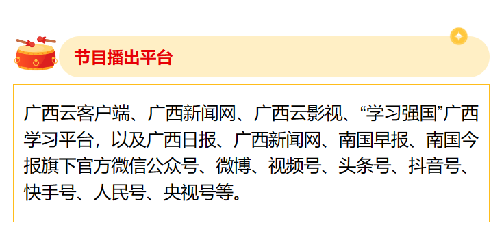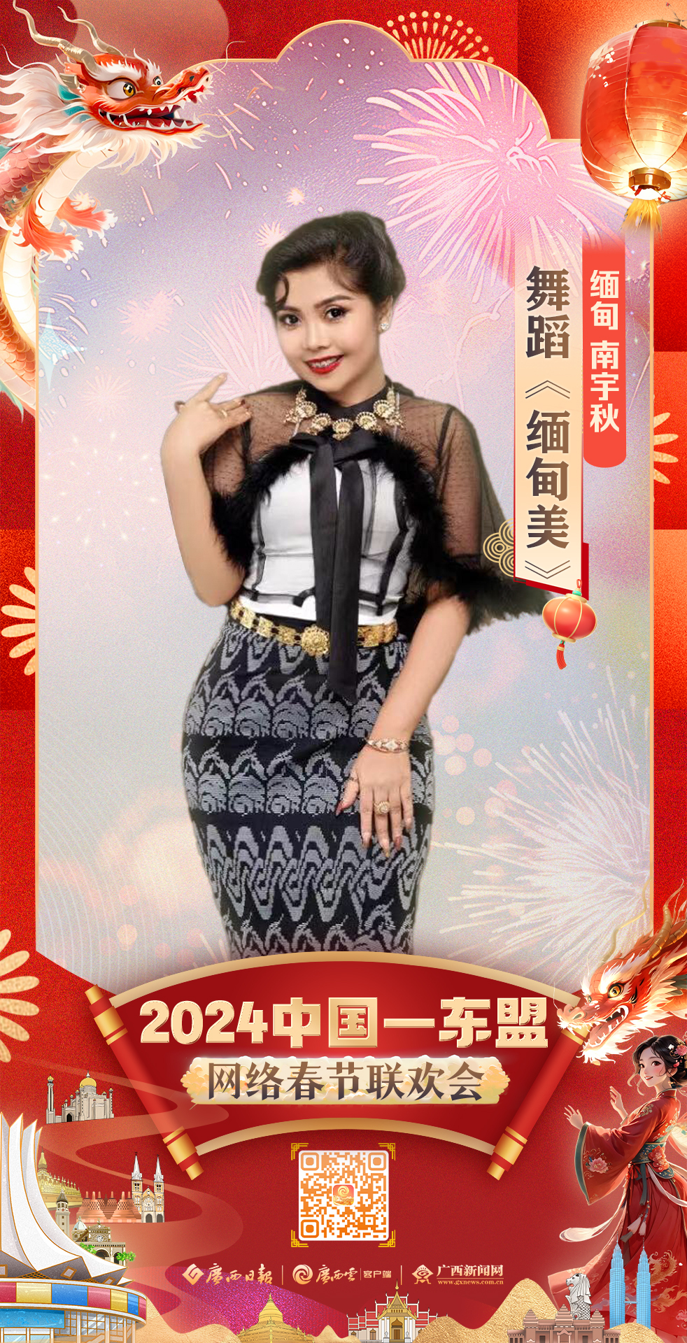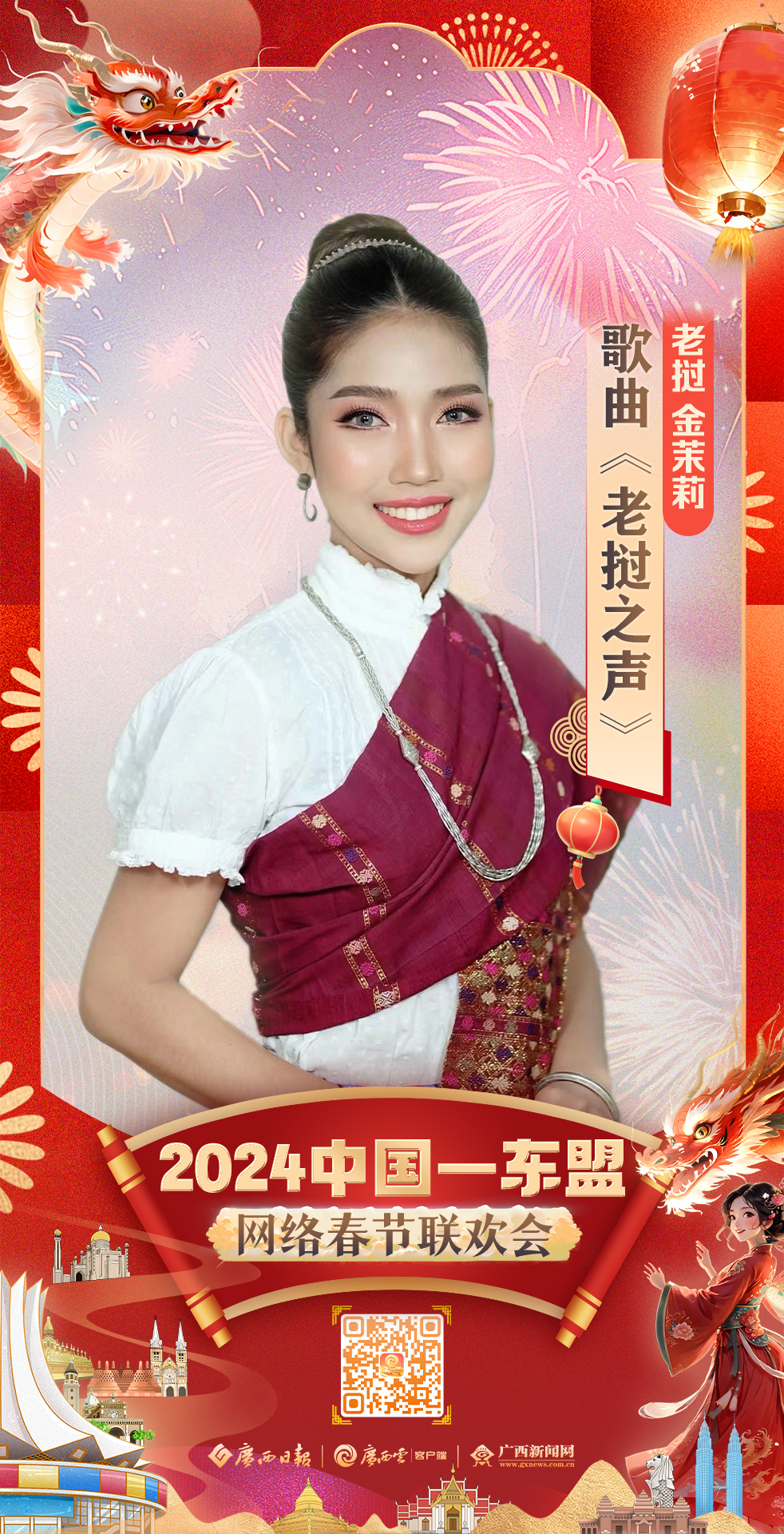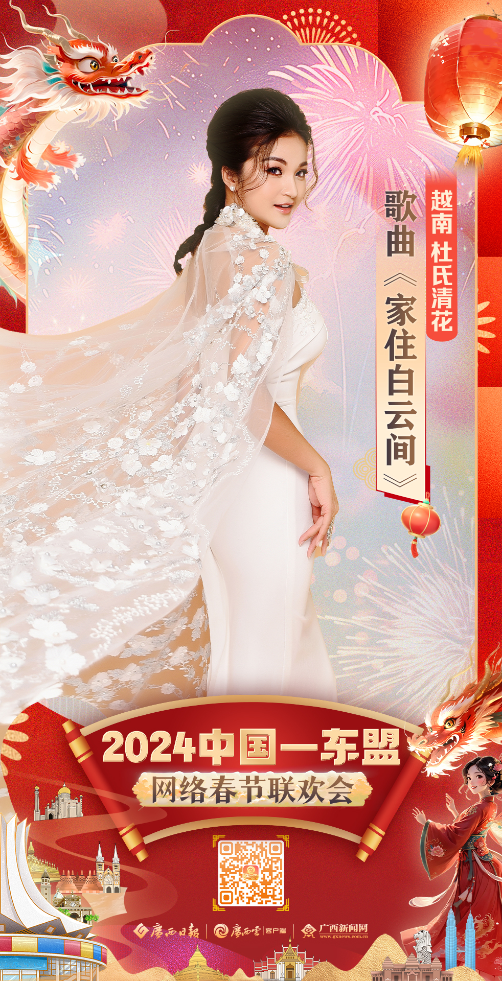 中国:赵羽&娅那组合 歌曲《幸福嘹嘹啰》 2024年2月8日 20:00 “跨越山海 焕新启航” 2024中国—东盟网络春节联欢会 即将“龙”重登场 更多惊喜,敬请期待!