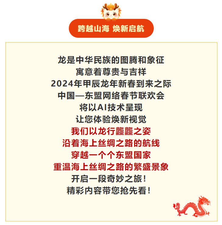 “龙”重上演!“跨越山海 焕新启航”2024中国—东盟网络春节联欢会即将播出 |